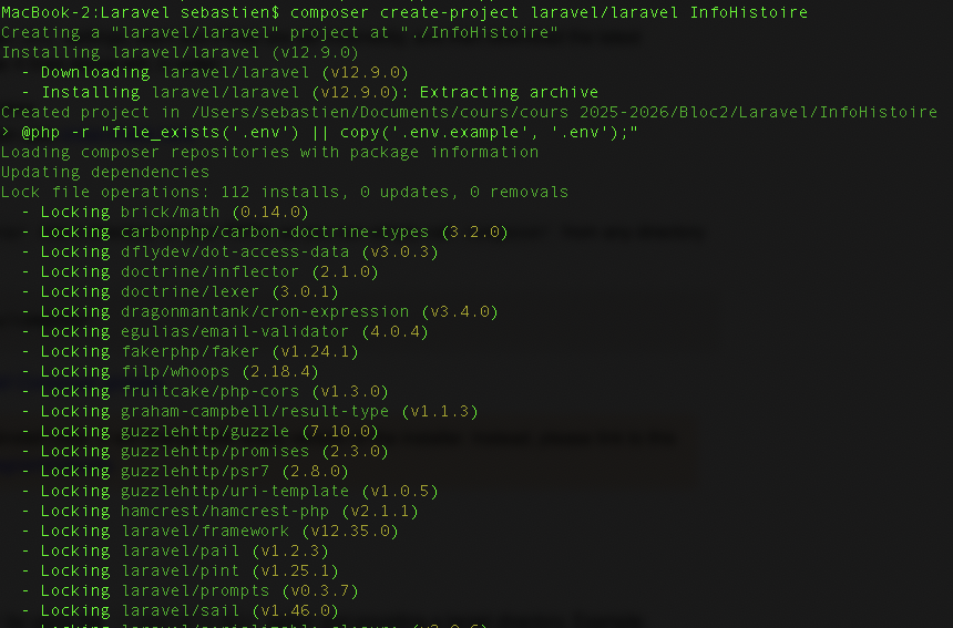 Il te permet ensuite de créer un nouveau projet Laravel depuis n’importe quel dossier avec une commande courte :