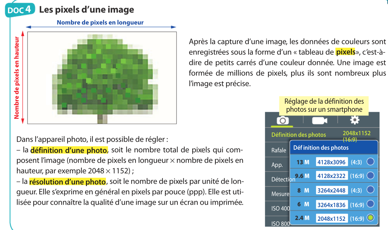 - DOC 4 : Quel réglage permet d’obtenir des photos de meilleure qualité ?Il faut prendre une définition plus grande.