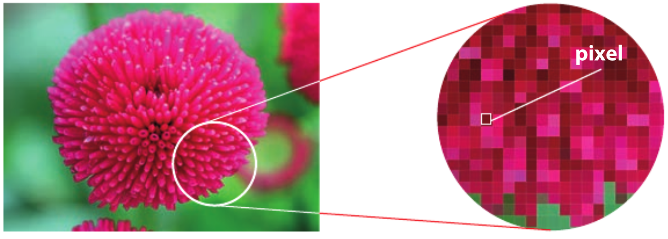 - Les caractéristiques d’une image numériquesUne image numérique se présente sous la forme d’un quadrillage dont chaque case est un pixel. La définition de l’image est le nombre total de pixels. Attention ce n’est pas forcément le nombre de photosite du capteur. ( Nous verrons pourquoi dans les activités à venir…).On appelle résolution le nombre pixels par unité de longueur ceci détermine sa qualité à l’impression ou sur écran.