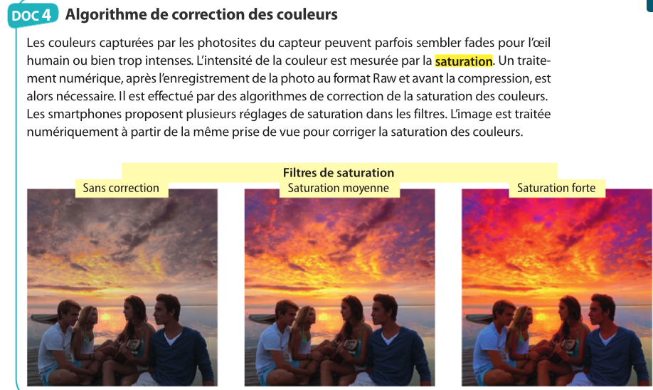 - DOC 4 : La correction de la saturation intervient-elle avant ou après la capture de l’image ?