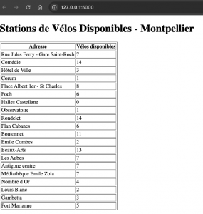 Nous allons donc récupérer les informations en passant par l’API (exercice1) et affiché les résultats dans une page Web en utilisant Flask.