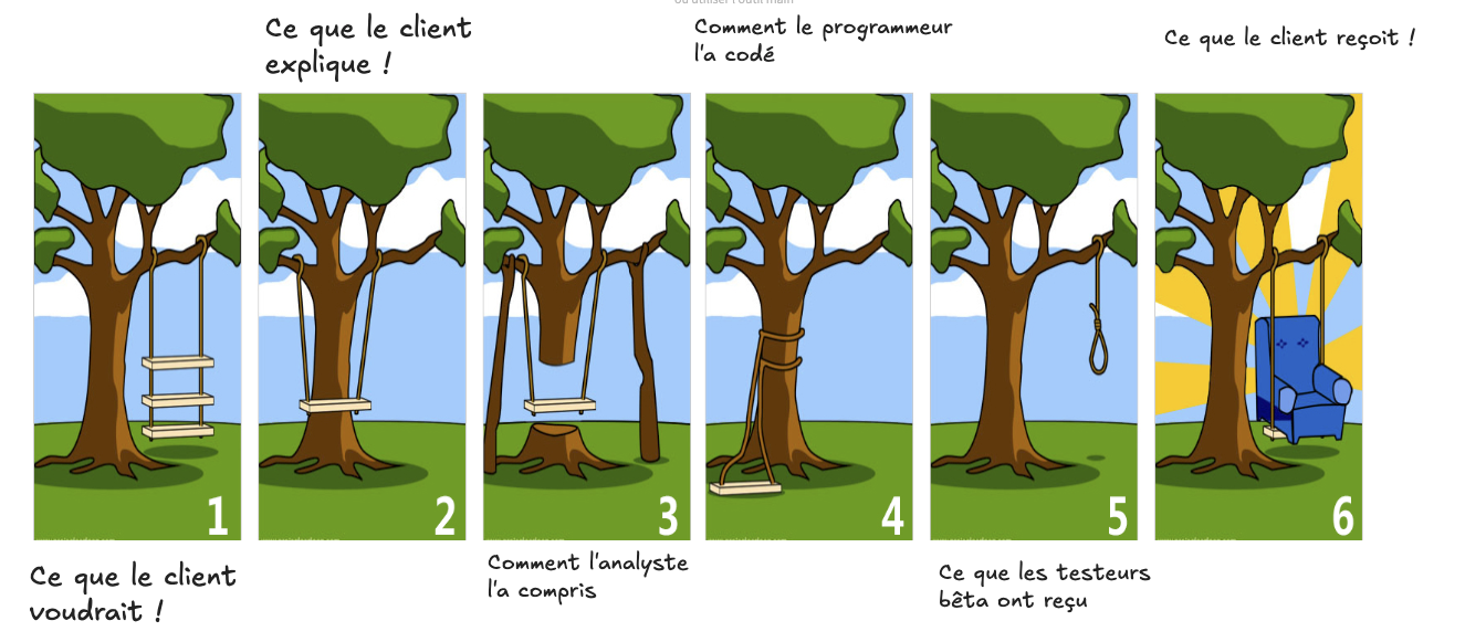 - Le risque de mauvaise interprétation des besoins : Cette validation tardive mène fréquemment à une mauvaise interprétation des souhaits du client, entraînant des dépassements de délais, de budgets, et dans de nombreux cas, l’abandon pur et simple du projet.